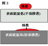 如果油墨的張力比物件大,油墨就不能貼服于物件表面。要改善此情況,物件需預先經(jīng)其他方法處理。所以要油墨有效地黏貼于物件上,油墨的張力必需比物件的表面能量低(圖2)。當物件表面有油脂,塵?;蚱渌砑游锏龋桀A先清潔以確保最佳的上色效果。